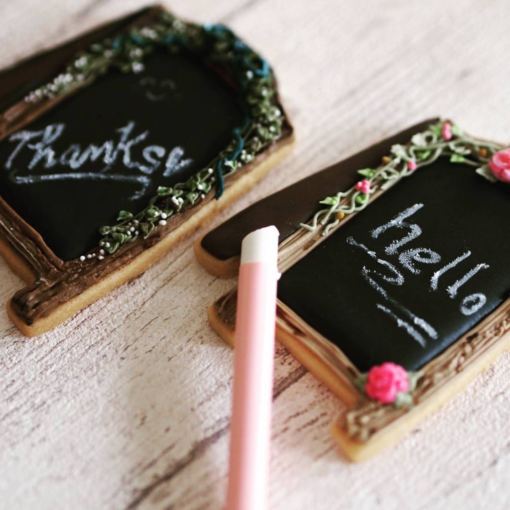 *食べられる材料でチョークを作り、クッキーのチョークボードに絵を描きます。